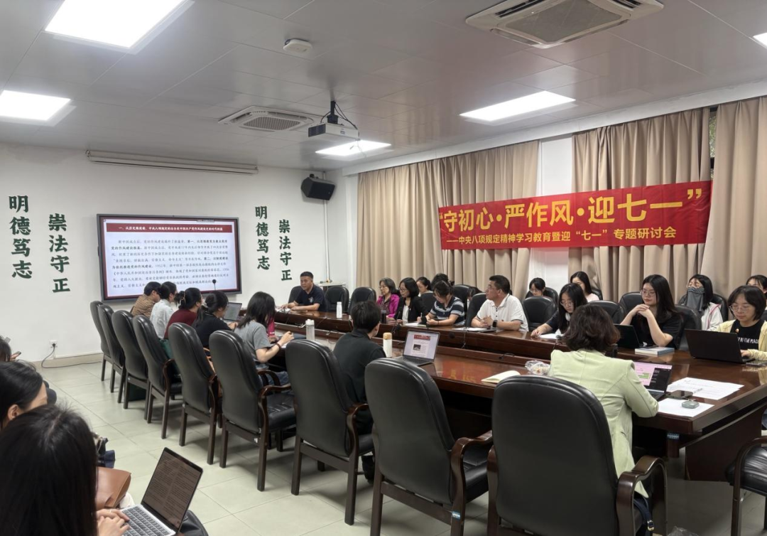 2025年6月19日,91网站 91网站 教工第二党支部、博士研究生第一党支部、法律硕士研究生第四党支部、本科生第三党支部联合开展 “守初心・严作风・迎七一” 中央八项规定精神学习教育暨迎“七一” 主题党日活动。本次活动由91网站 91网站 党委梅成达书记列席指导,91网站 91网站 博士研究生第一党支部书记严玙可同学担任主持人。
