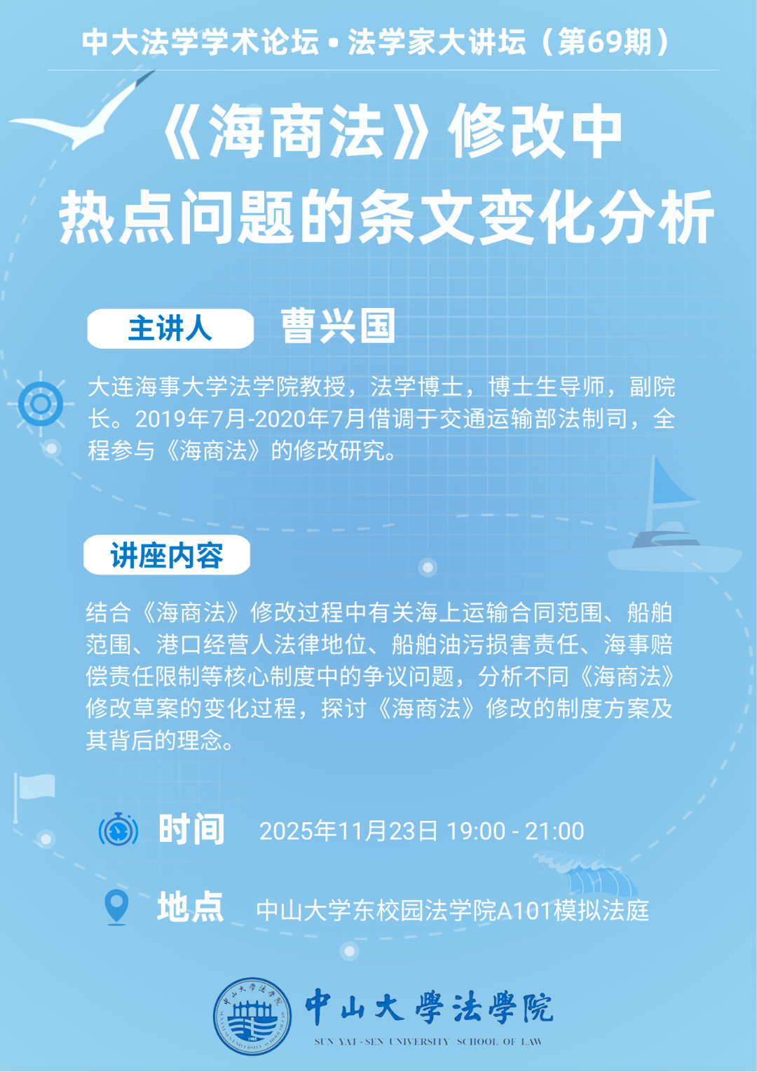 中大法学学术论坛 • 法学家大讲坛(第69期):《海商法》修改中热点问题的条文变化分析